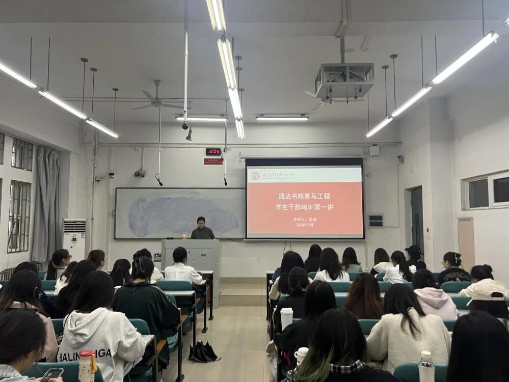 2025年9月28日中午,通达书院在郑东校区教二108教室开展2025-2026学年“青马工程”培训第一讲。本次培训由静4社区团委书记王璇主讲,通达书院全体参训学员参加。